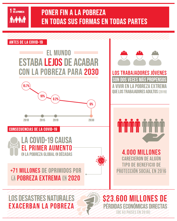 El Objetivo 1 de los Objetivos de Desarrollo Sostenible (ODS) de las Naciones Unidas busca erradicar la pobreza en todas sus formas, garantizando que las personas tengan acceso a recursos, oportunidades y protección social.